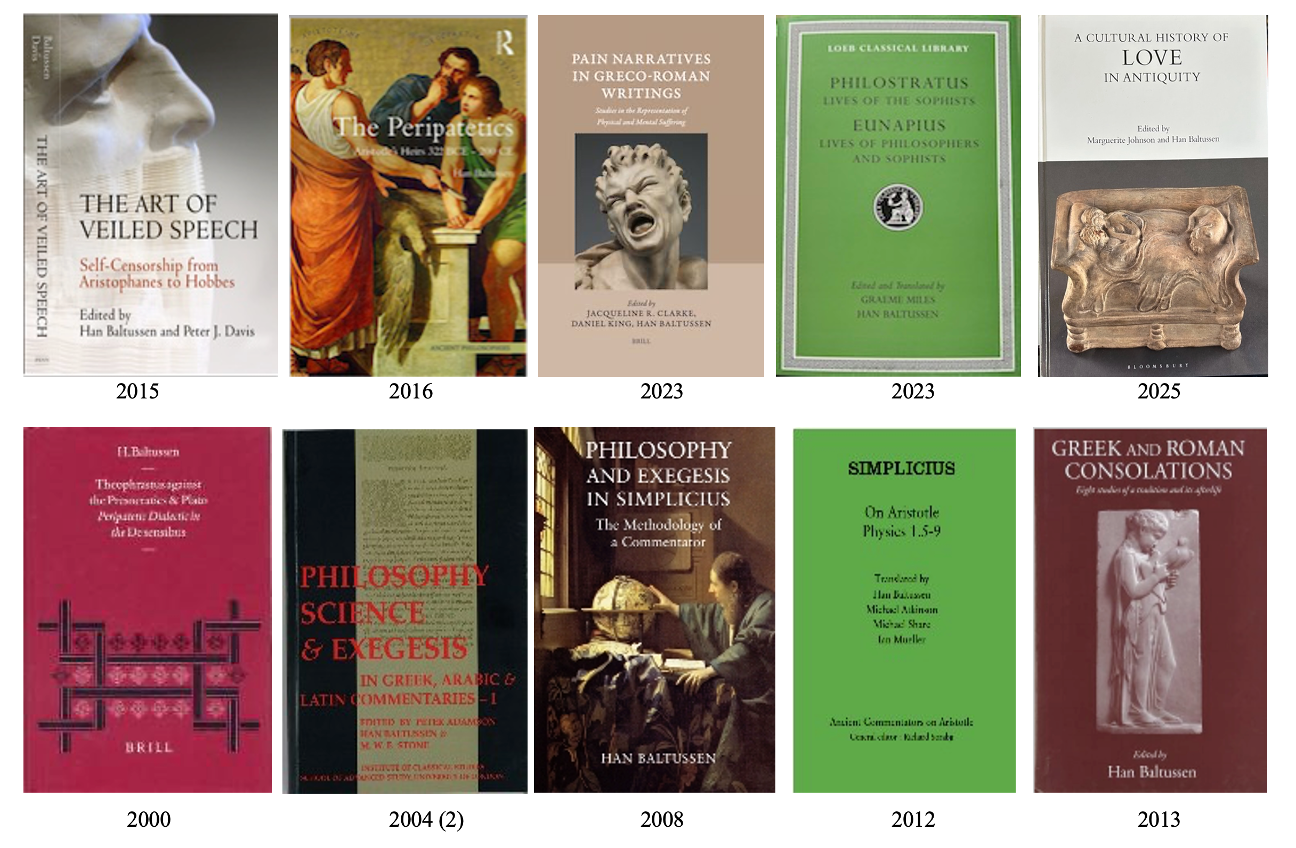 Professor Baltussen's research interests fall within the intellectual history of the ancient mediterranean and its influence [for details see below under the Research Tab]. In 2023 he joined the 'Loeb family' by publishing a new text and translation of Eunapius' "Lives of Philosophers and Sophists" (Harvard University Press). His latest book, a volume co-edited with Marguerite Johnson (Newcastle) entitled 'A Cultural History of Love in Antiquity' for Bloomsbury appeared in January 2025.